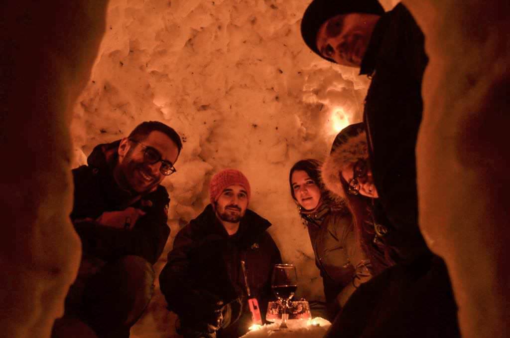 Qu’est-ce qu’on fait pour Noël au Québec ? Un bon igloo pour 7 personnes, même s’il y a un chalet en bois juste à côté !